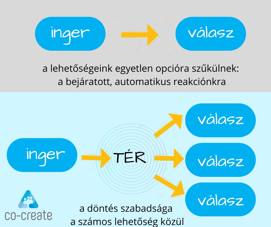 Az inger és a válasz között van egy tér. Ebben a térben hatalmunkban áll megválasztani a válaszunkat. Válaszunkban növekedésünk és szabadságunk rejlik.