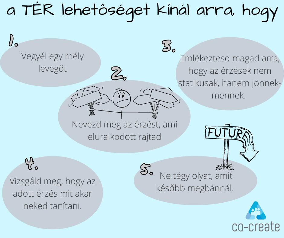 A tér azonban nem csak érzelmi szempontból támogat minket, hanem arra is lehetőséget kínál, hogy kívülről ránézzünk adott helyzetben a gondolkodási sémáinkra, és ha szükséges váltsunk konstruktívabb gondolkodásmódra.