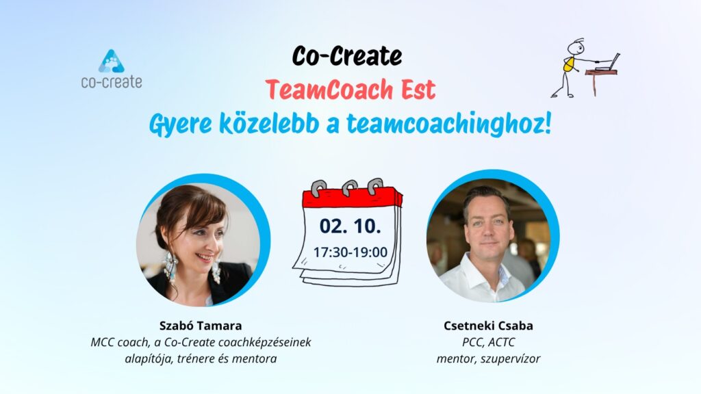 Co-Create TeamCoach Est: Gyere közelebb a teamcoachinghoz! Online találkozás a képzőkkel – Csetneki Csaba PCC, ACTC-vel és Szabó Tamara MCC-vel